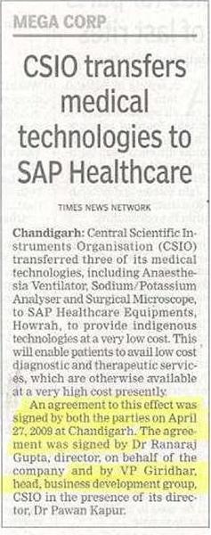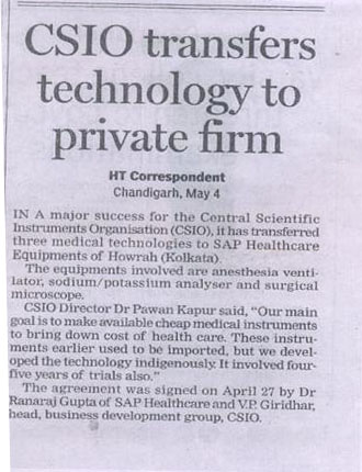 In 2009, the company took a major initiative having collaboration with the prestigious Central Scientific Instruments Organisation, Chandigarh.